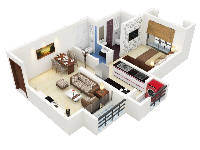 - 1 BHK Unit Plan 470 Sq.Ft